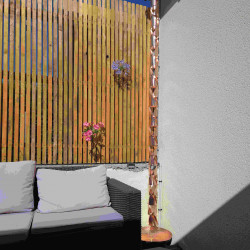 La chaine de pluie en cuivre développera une jolie patine au fil du temps