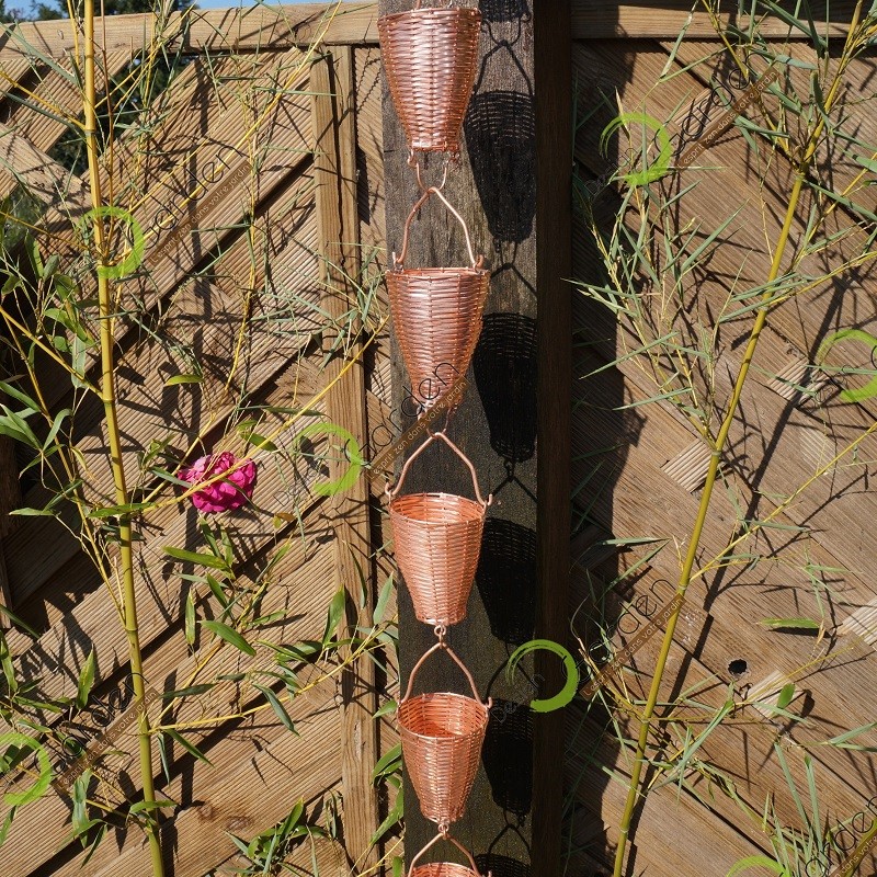 La chaine de pluie Ankaa et son aspect modelé en fil de cuivre, vous comblera tout en transportant l'eau de votre gouttière vers sa destination finale avec un joli bruit de ruissellement.