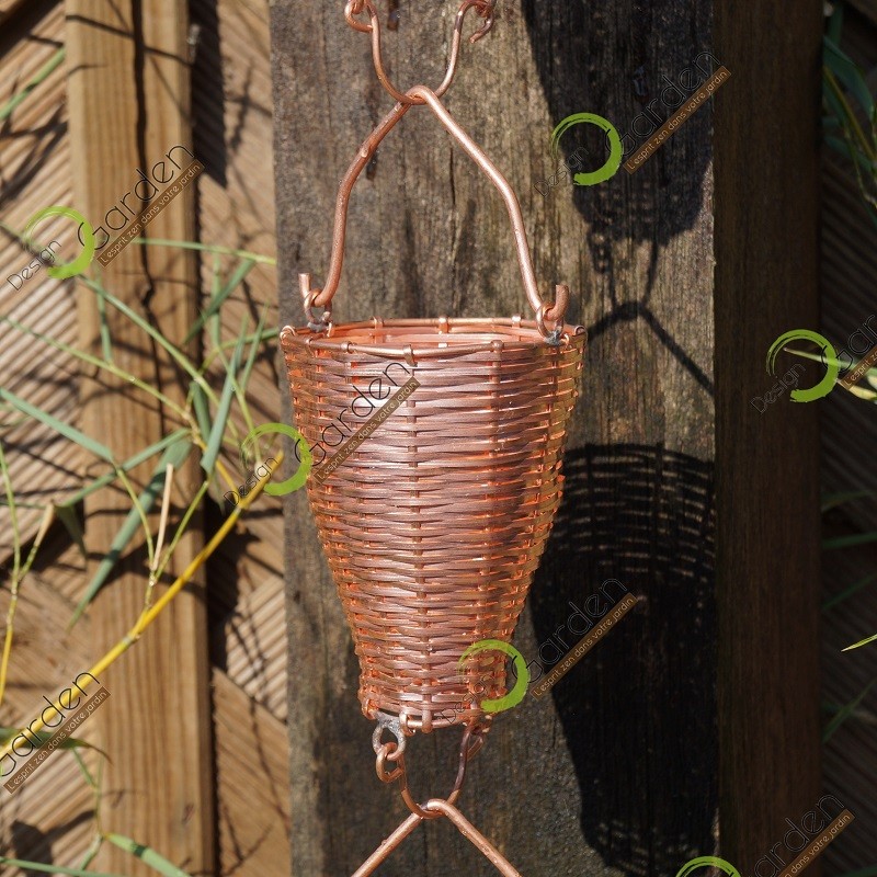 La chaine de pluie Ankaa et son design de panier en osier la rend tout à fait compatible en descente de gouttière mais également en élément décoratif pour des suspensions florales. En effet sa conception permet à la terre d’être parfaitement drainée.
